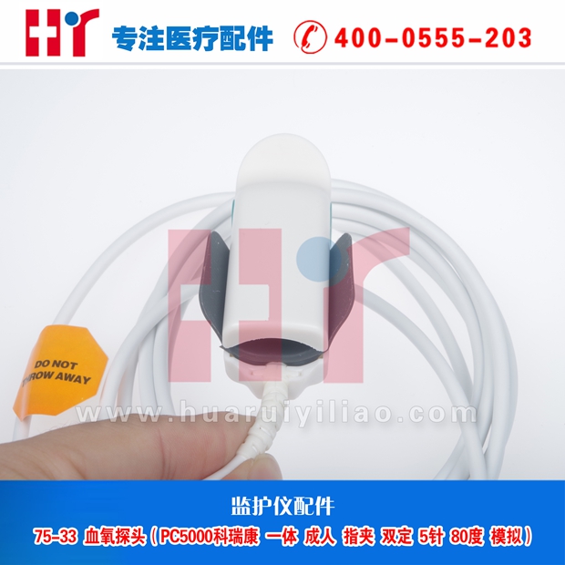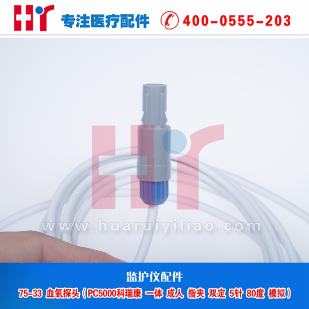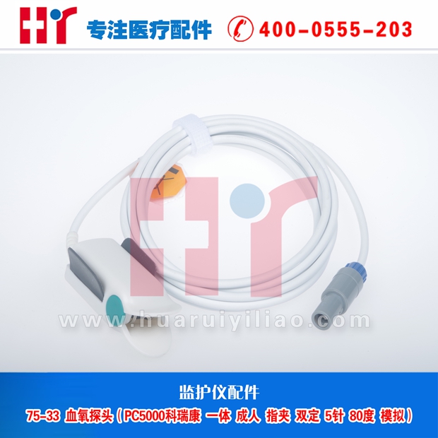 75-33 监护血氧探头 PC5000科瑞康成人指夹双定5针80度数字