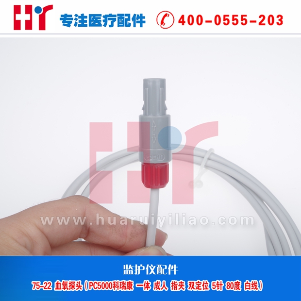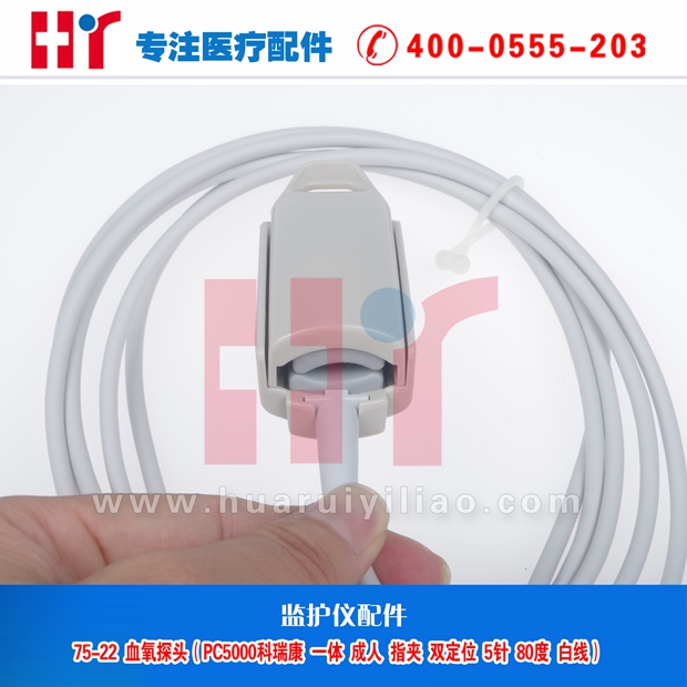 75-22 监护血氧探头PC5000科瑞康一体成人指夹-双定位5针80度