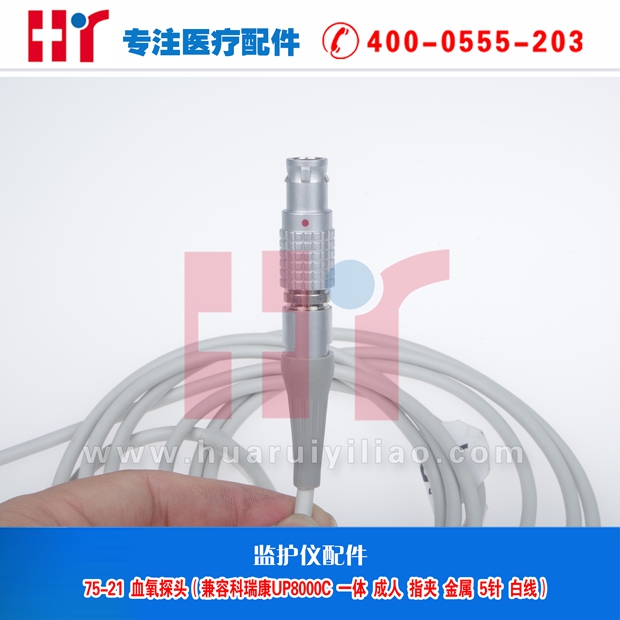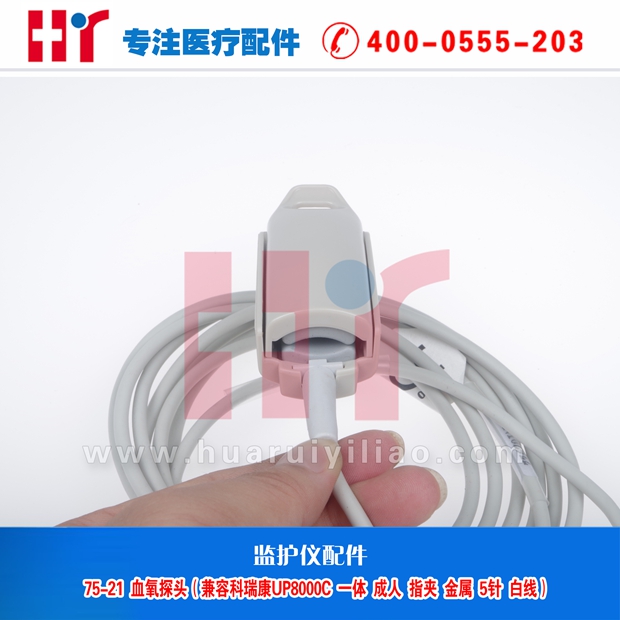 75-21 监护血氧探头 兼容科瑞康UP8000C一体成人指夹5针 白线