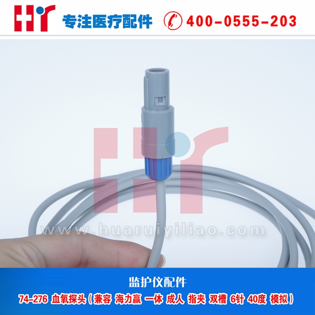 74-276 监护血氧探头(兼容海力赢成人指夹 双槽6针40度-模拟)