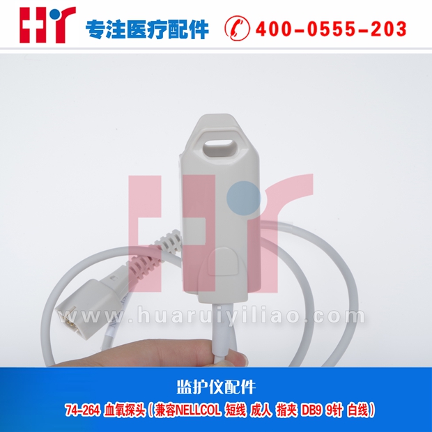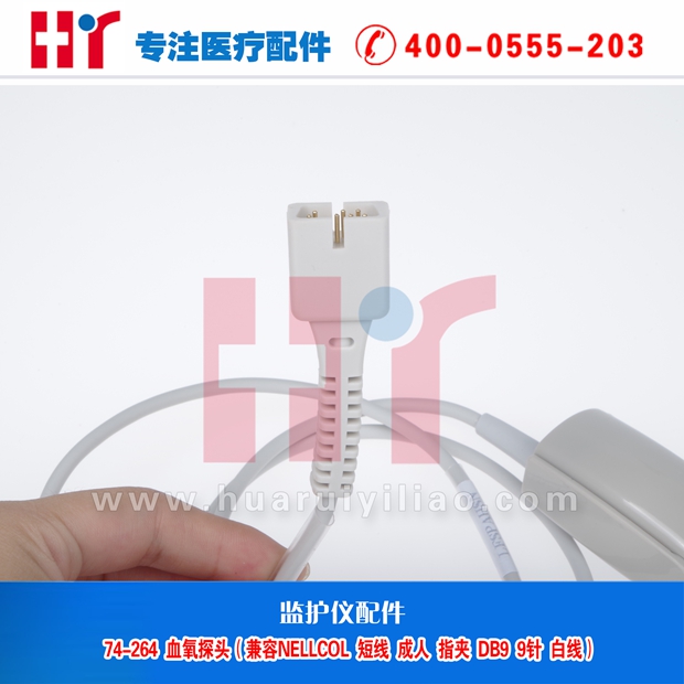 74-264 血氧探头(兼容NELLCOL短线成人指夹-DB9-9针-白线-LF)