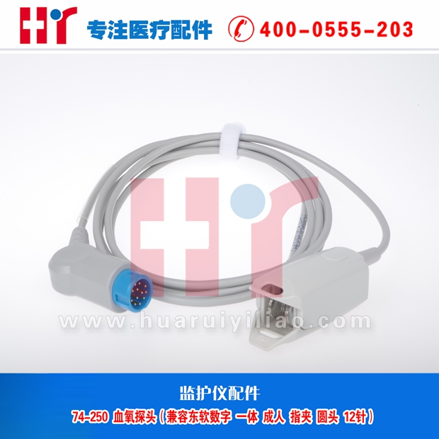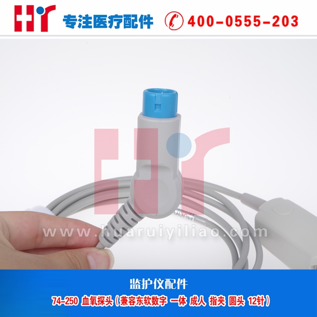 74-250 血氧探头 兼容东软数字一体成人指夹 -圆头12针