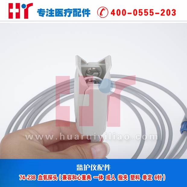 74-238 血氧探头 兼容和心重典/科曼8000/成人指夹 单定6针