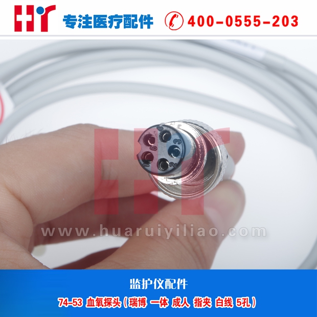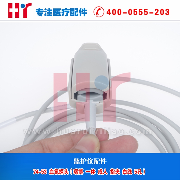 74-53 血氧探头 湖南瑞博一体成人指夹探头-LF-白线-5孔