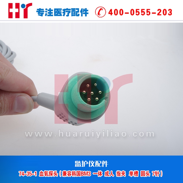 74-35-1 血氧探头 兼容韩国BM3一体成人指夹 模拟-单槽圆头7针XHJ