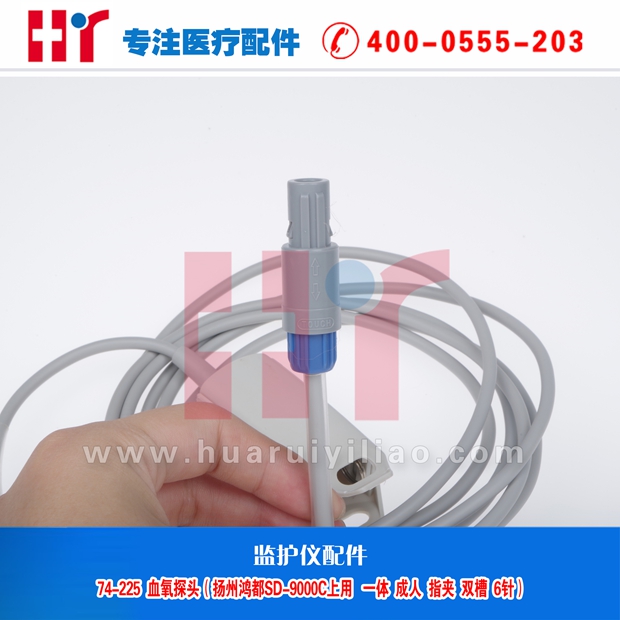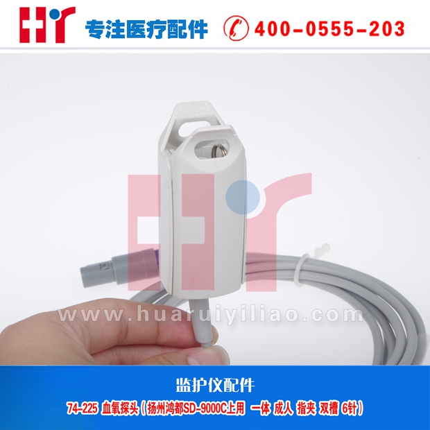 74-225 监护血氧探头(扬州鸿都SD9000C成人指夹探头双槽6针XHJ)