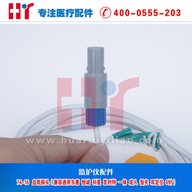 74-16 血氧探头 兼容 东唐/恒诚/科曼/发时特一体 双定位6针