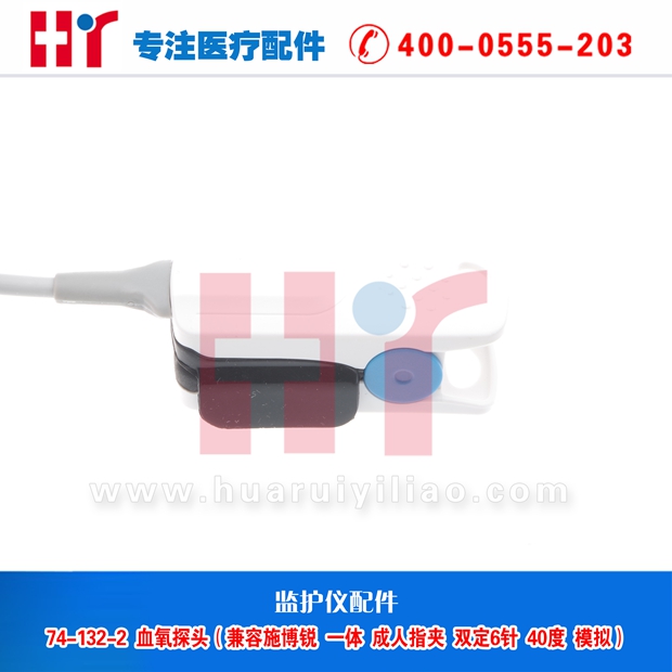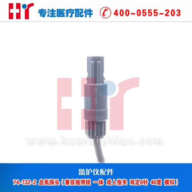 74-132-2 血氧探头(兼容施博锐 一体 成人指夹 双定6针 40度)