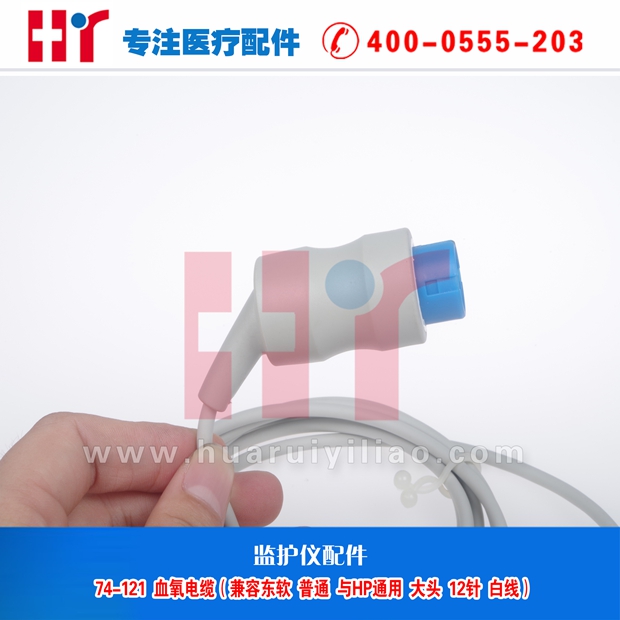 74-121 血氧电缆(兼容东软 普通 与HP通用 大头 12针 白线)