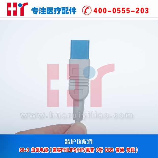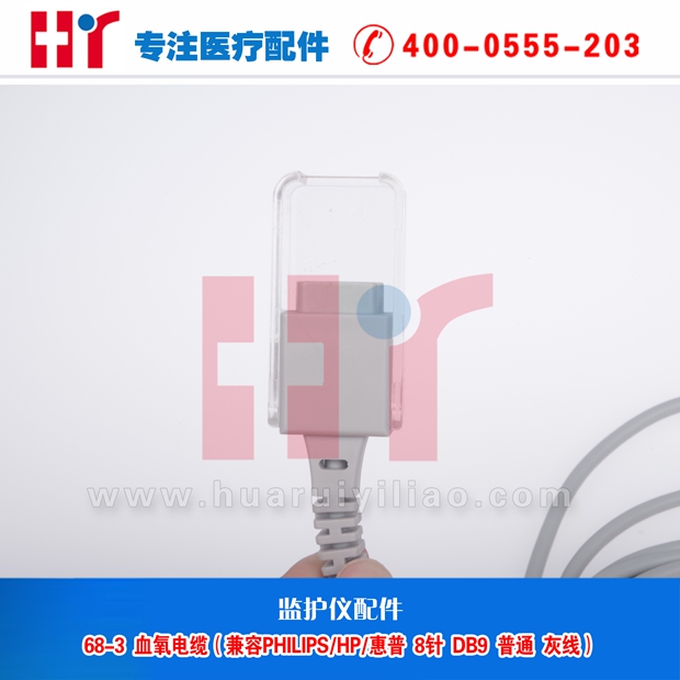 68-3 血氧电缆( 兼容PHILIPSHP 8针 DB9 普通 灰线)