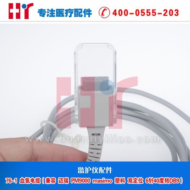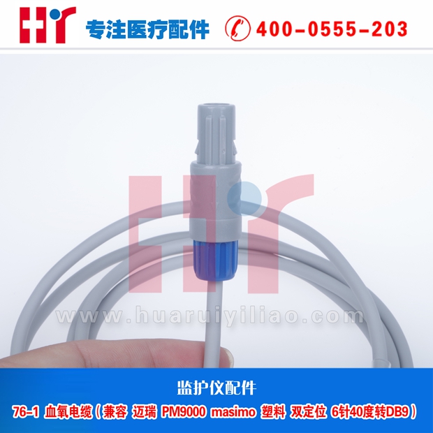76-1 血氧电缆 兼容迈瑞PM9000 MASIMO塑料双定位6针40度