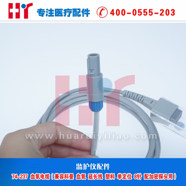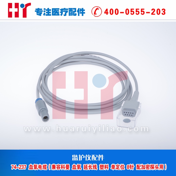 74-237 血氧电缆 兼容-科曼-塑料单定位8针-SZZH 配加密探头用