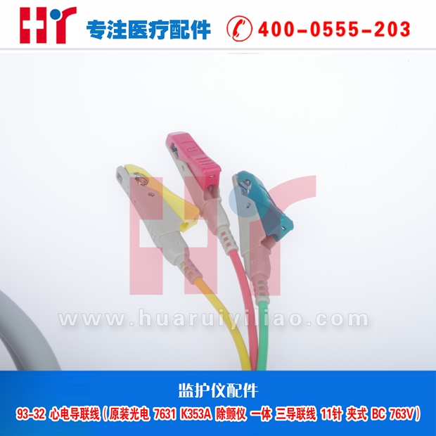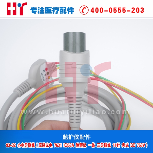 93-32 监护心电导联线(原装光电除颤仪 7631 一体三导联线)