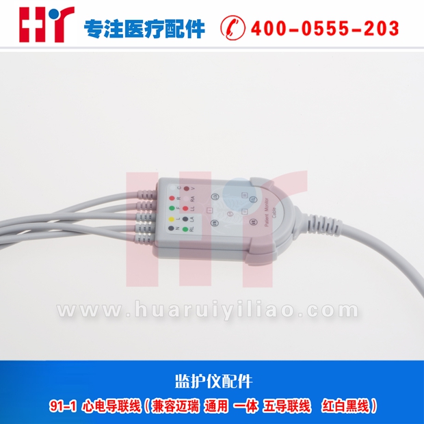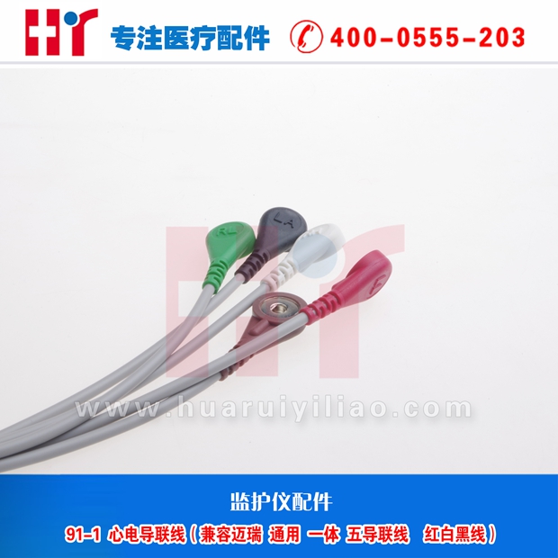 91-1 心电图机导联线 兼容 迈瑞通用 一体 五导联线 红白黑线