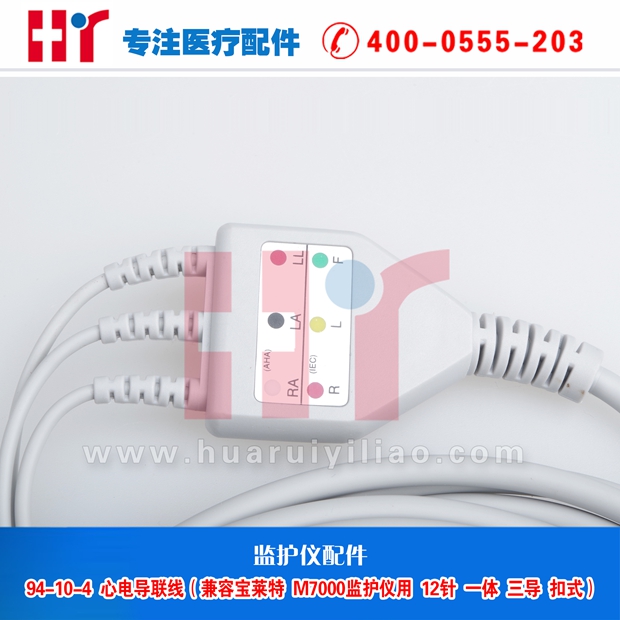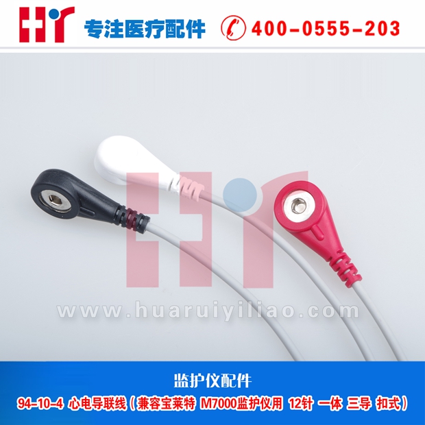 94-10-4 心电导联线(兼容宝莱特M7000监护仪用 12针 三导 扣式)