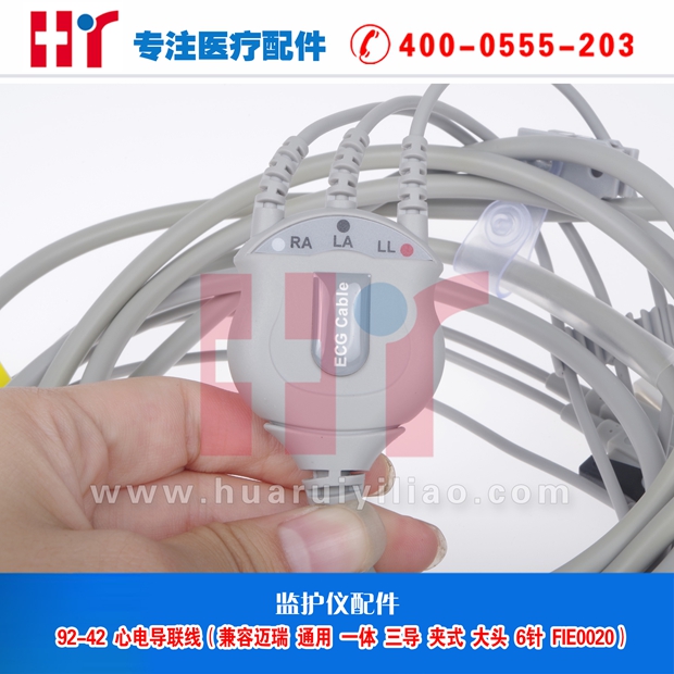 92-42 心电导联线(兼容迈瑞 一体 三导 夹式 大头 6针)