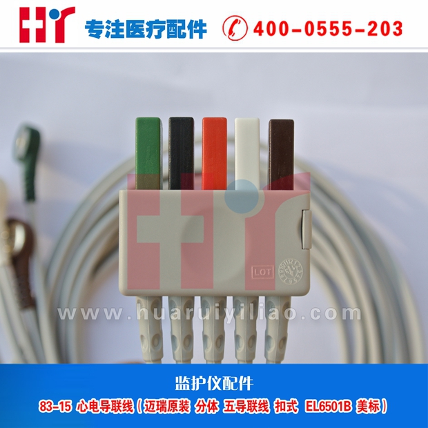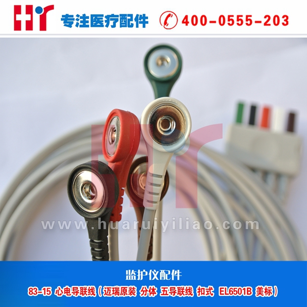 83-15 分体五导联线 迈瑞原装 扣式 EL6501B 美标