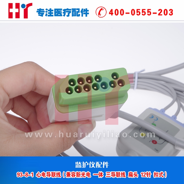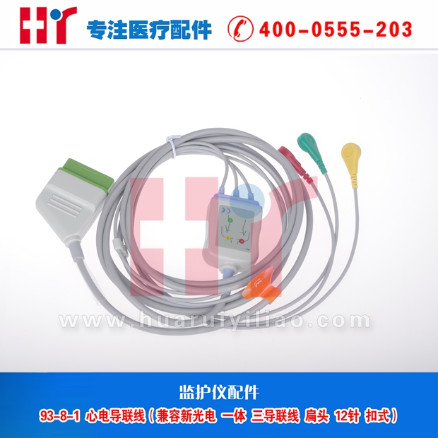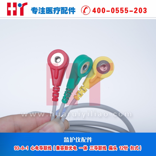 93-8-1 心电导联线(兼容新光电 一体 三导联线 扁头 12针 扣式)
