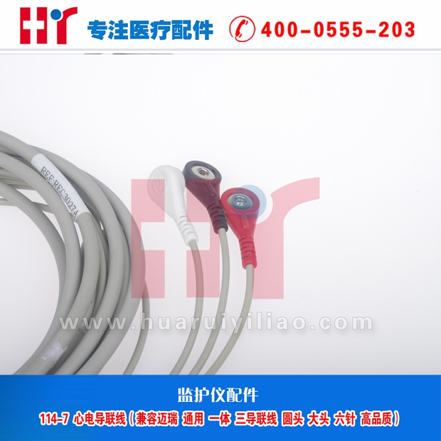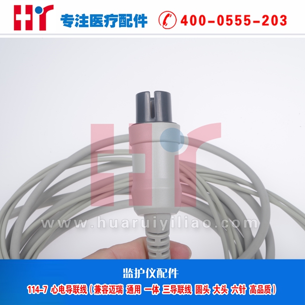 114-7心电导联线(兼容迈瑞 通用一体 三导圆头 大头六针高品质)