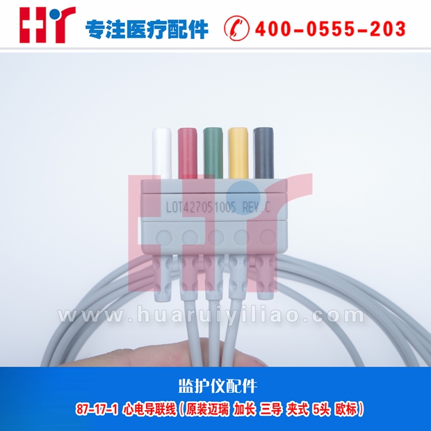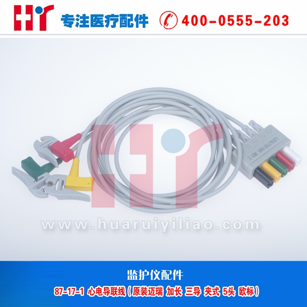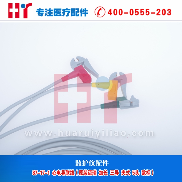 87-17-1 心电导联线(原装迈瑞 加长 三导 夹式 5头 欧标)