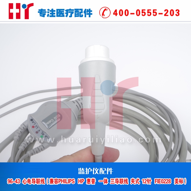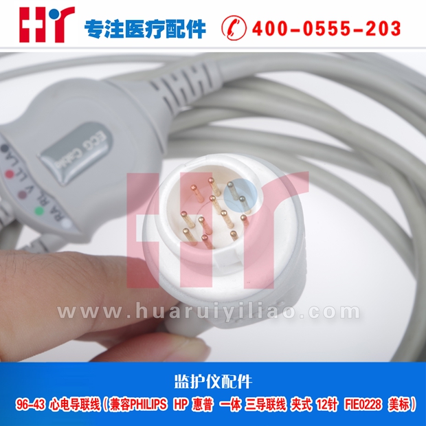 96-43 心电导联线(兼容惠普 一体 三导 夹式 12针 美标)