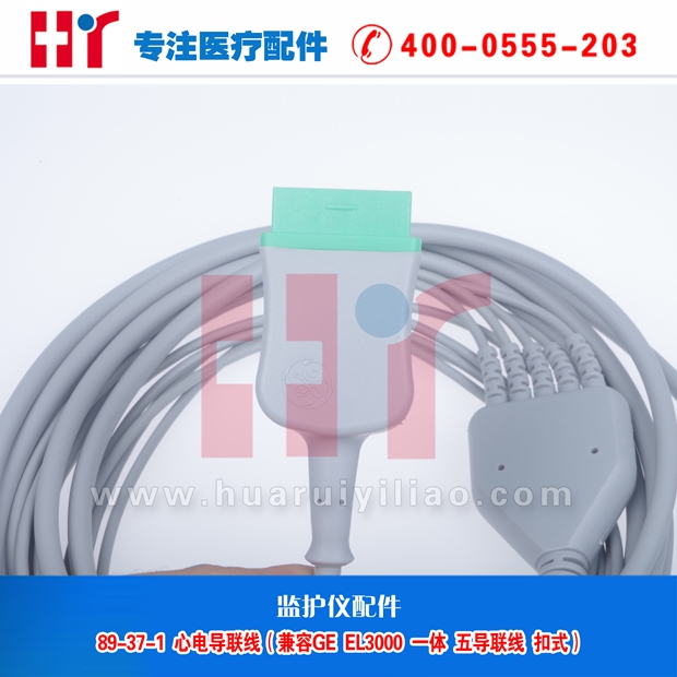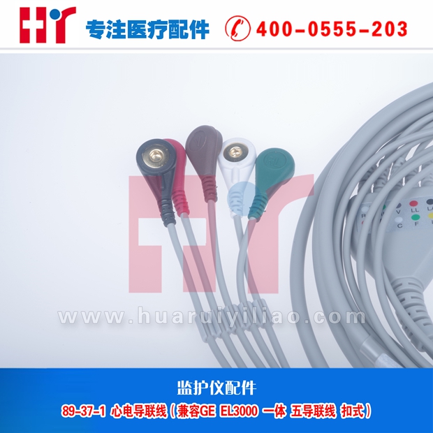 89-37-1 心电导联线(兼容GE EL3000 一体 五导联线 扣式)