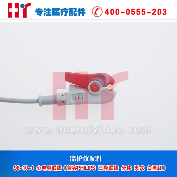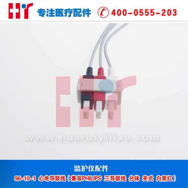 96-10-1 心电导联线(兼容PHILIPS 三导联线 分体 夹式 白黑红)