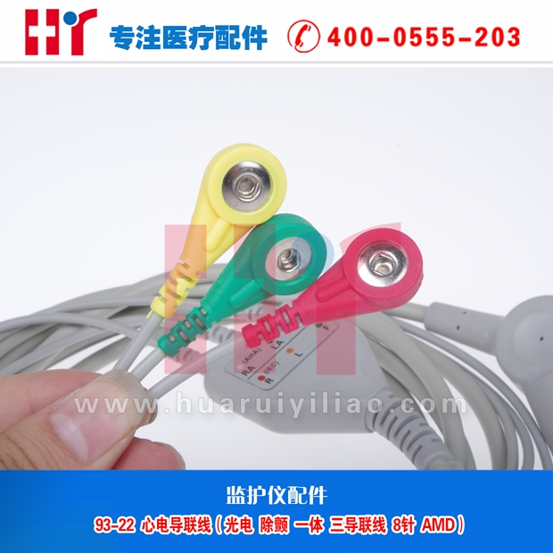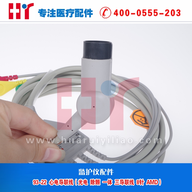 93-22 监护心电导联线(兼容光电除颤 一体 三导联线 8针 AMD)