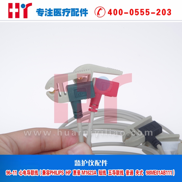 96-11 监护心电导联线(兼容PHILIPS /HP/惠普 M1623A 短线)
