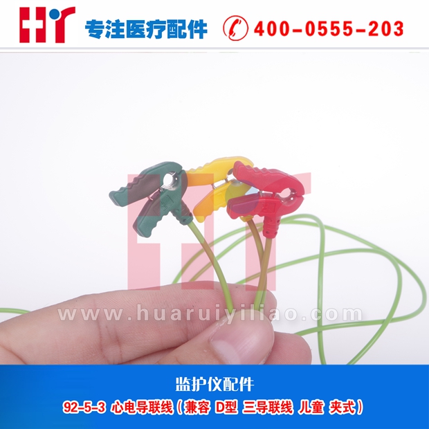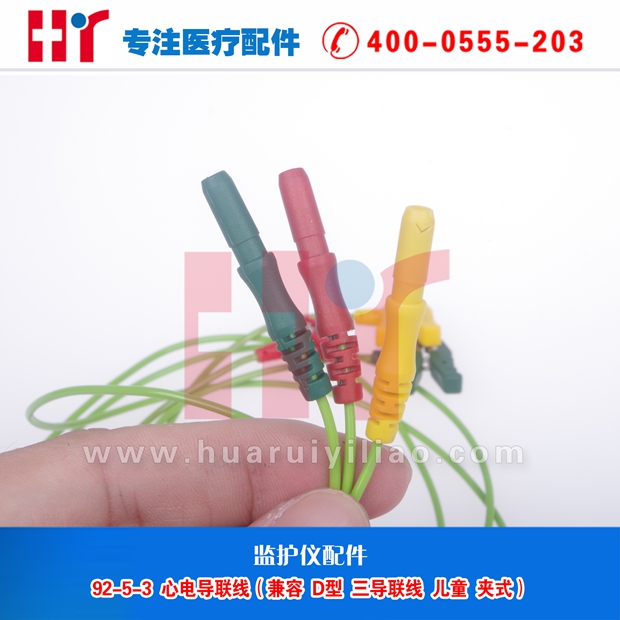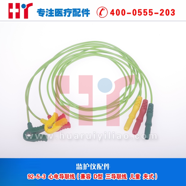 92-5-3 监护心电导联线(兼容迈瑞D型 三导联线儿童夹式-彩线)
