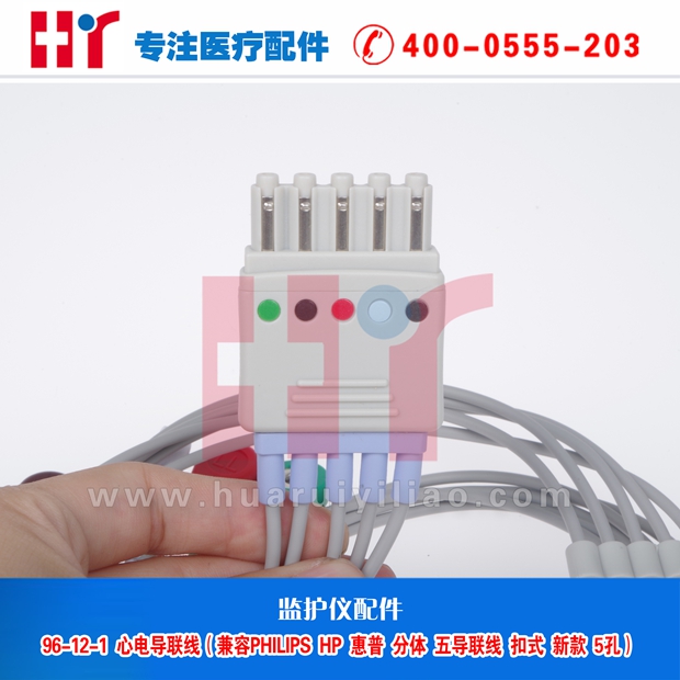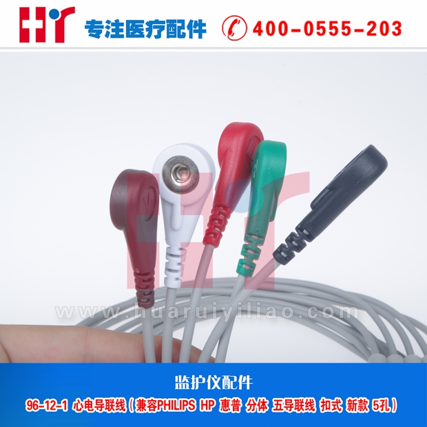 96-12-1监护心电导联线(兼容PHILIPS /HP/惠普扣式 5孔)