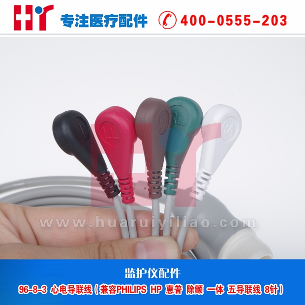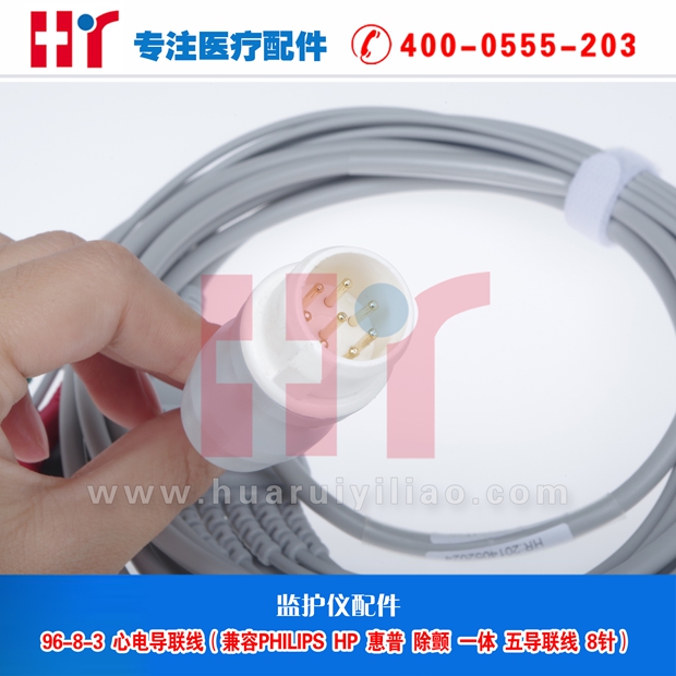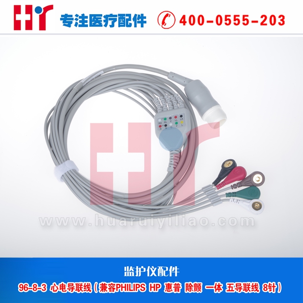 96-8-3监护心电导联线(兼容PHILIPS/惠普除颤一体五联线 8针)