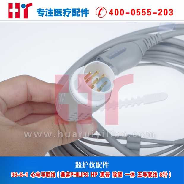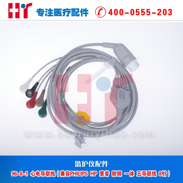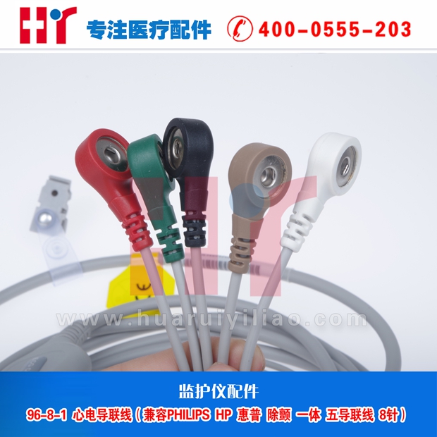 96-8-1监护心电导联线(兼容PHILIPS /HP/惠普除颤五导联8针)