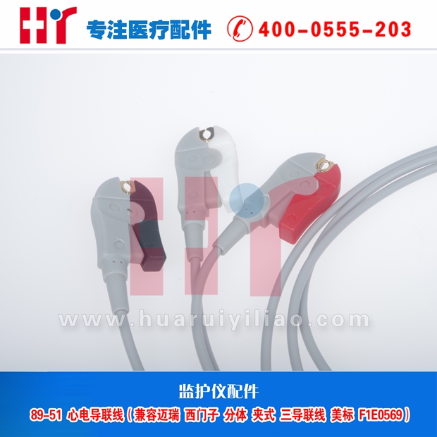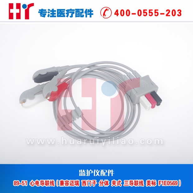 89-51 监护心电导联线(兼容迈瑞 西门子 分体 夹式三导联线)