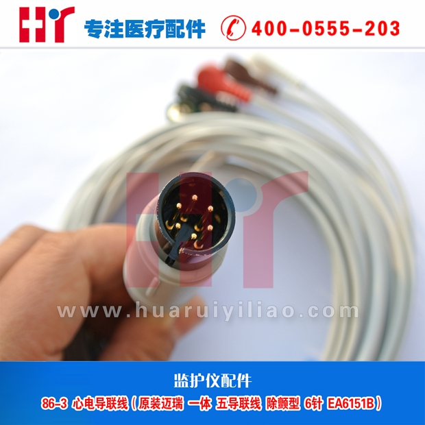 86-3 监护心电导联线(原装迈瑞 一体 五导联线 除颤型)