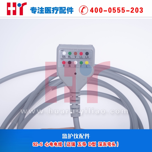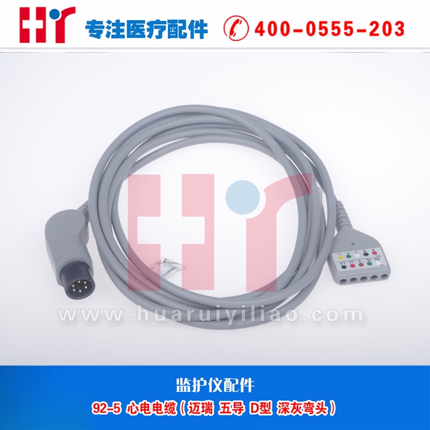 92-5 监护心电电缆(兼容迈瑞五导D型 深灰弯头)