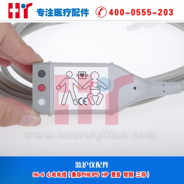 96-6监护心电电缆(兼容PHILIPS/HP /惠普除颤三导--12针)