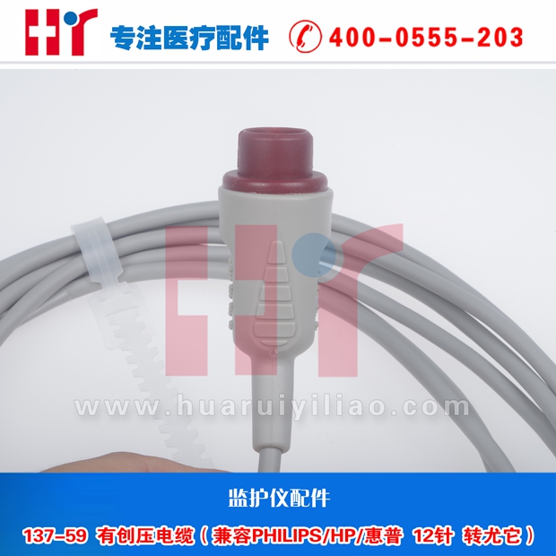 137-59 有创压电缆(兼容PHILIPS HP 惠普 12针 转尤它)