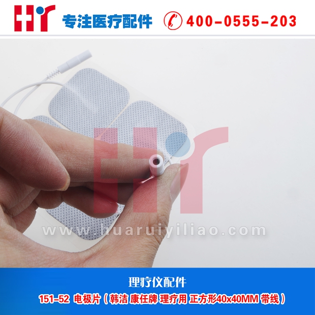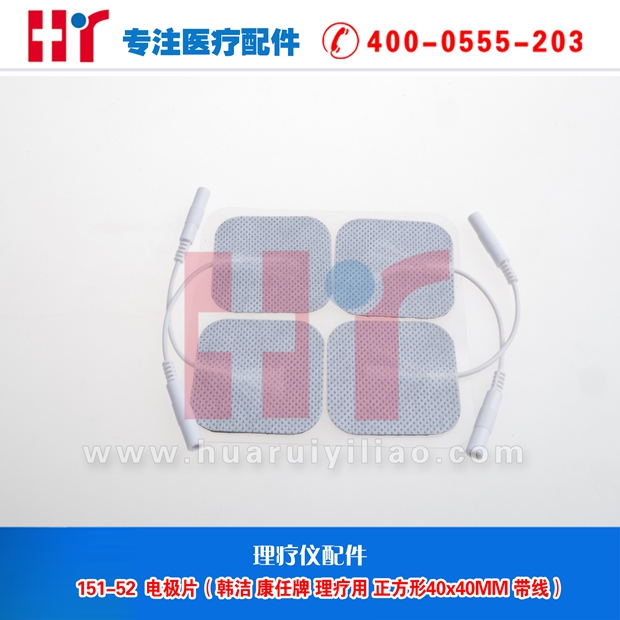 151-52 康任理疗用 正方形 40*40MM电极片 直径2.5 8片/包 带线