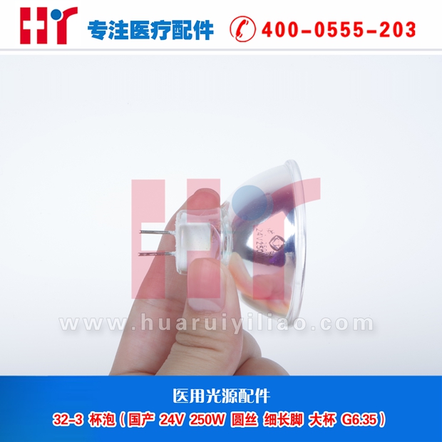 32-3 杯泡(国产 24V 250W 圆丝 细长脚 大杯 MR16 G6.35)