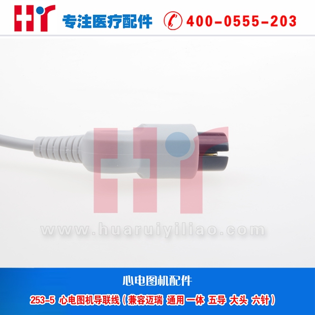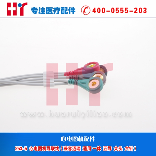 253-5 心电图机导联线(兼容 迈瑞 通用 一体 五导 大头 六针)