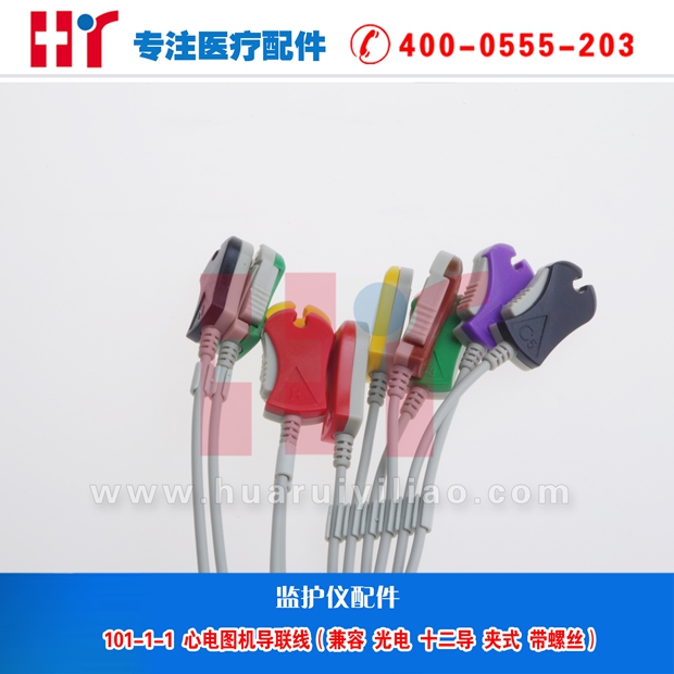 101-1-1 心电图机导联线(兼容 光电 十二导 夹式 带螺丝)