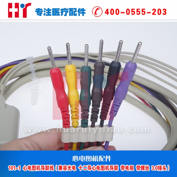 101-1 心电图机导联线兼容光电 十二导心电图机导联带电阻带螺丝