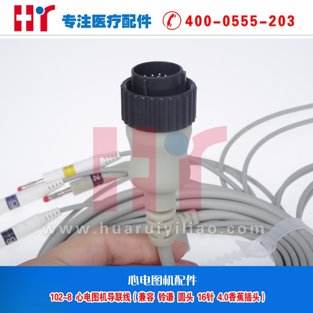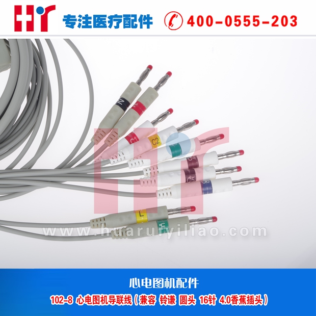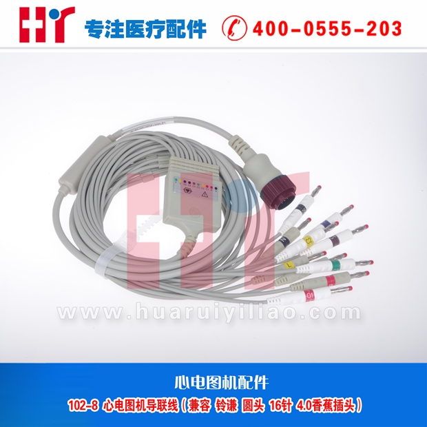 102-8 心电图机导联线(兼容铃谦 圆头 16针 4.0香蕉插头)