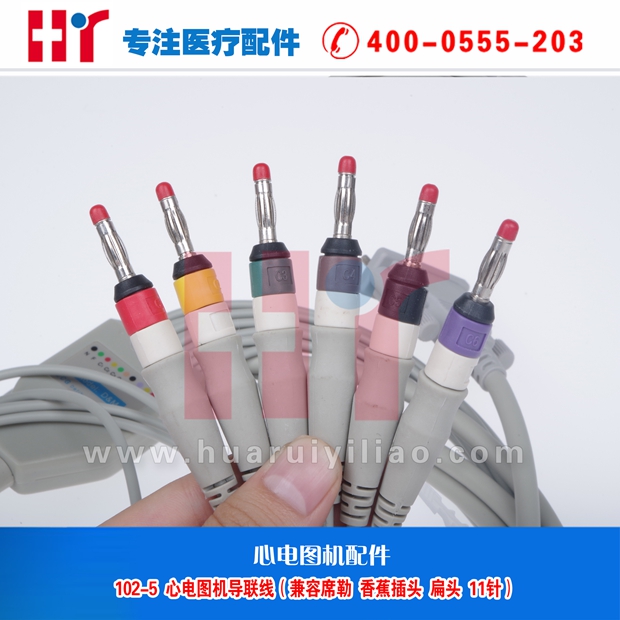 102-5 心电图机导联线(兼容席勒 香蕉插头 扁头 11针)