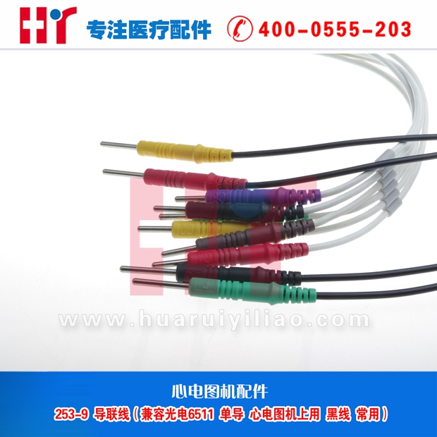253-9 导联线(兼容光电6511 单导 心电图机上用 黑线 常用)