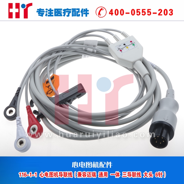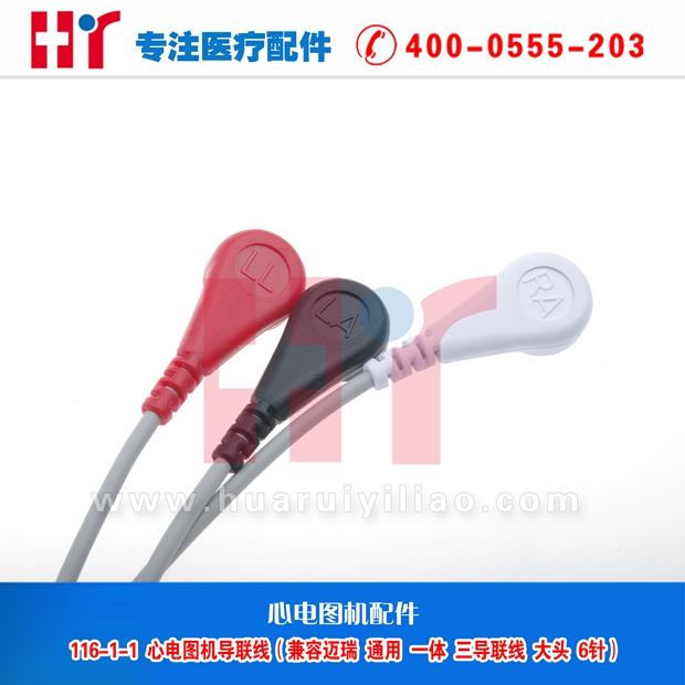 116-1-1 心电图机导联线(兼容迈瑞 通用 一体 三导 大头 6针)