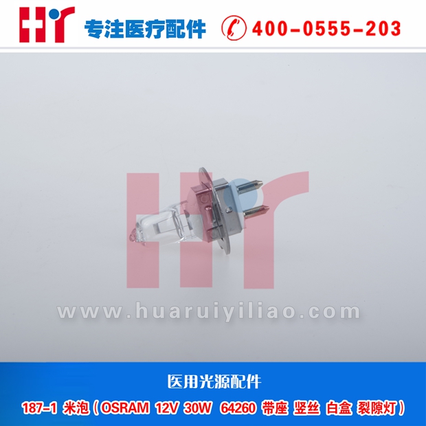 187-1 米泡(12V 30W 64260 带座 竖丝 白盒 裂隙灯)