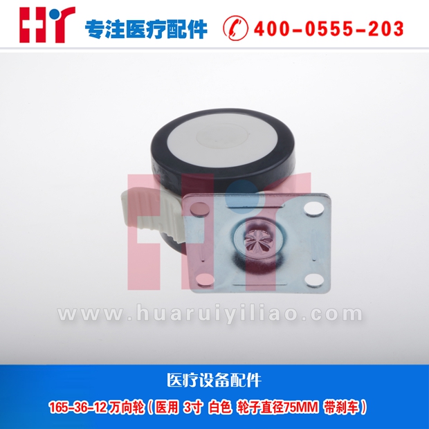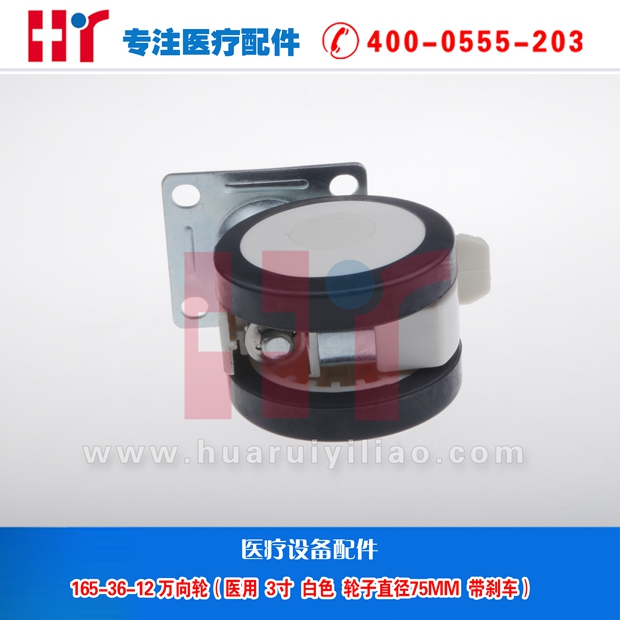 165-36-12 万向轮(医用 3寸 白色 轮子直径75MM 带刹车)