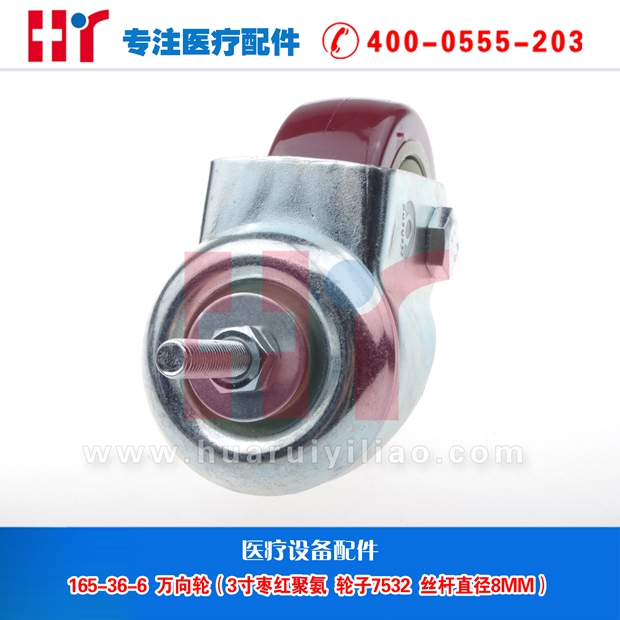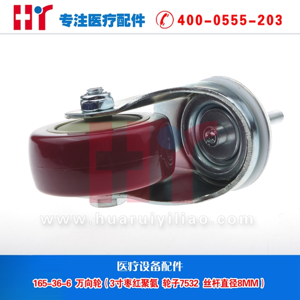 165-36-6 万向轮 3寸枣红聚氨 轮子7532 丝杆直径8MM